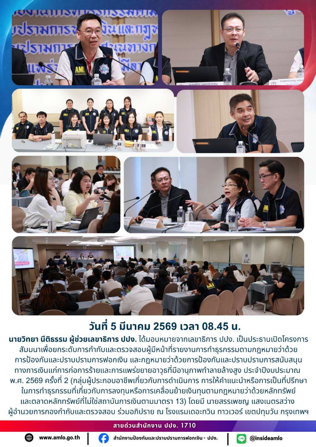ส่วนกำกับและตรวจสอบ 3 จัดโครงการสัมมนาเพื่อยกระดับการกำกับและตรวจสอบผู้มีหน้าที่รายงานการทำธุรกรรมตามกฎหมายฯ ครั้งที่ 2 กลุ่มผู้ประกอบอาชีพตามมาตรา 16 (1)